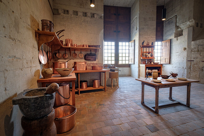 Das architektonisch konsequente und allein gestalterischen Gesichtspunkten unterworfene Konzept des Schlosses lässt jeden Wohnkomfort vermissen. Die Innenräume werden zum Teil durch offene Galerien an den Außenwänden verbunden, die großen Räume ließen sich durch die Kamine kaum erwärmen. Dennoch sind die (wenigen) sanitären Einrichtungen von erstaunlicher Raffinesse: die den Unrat in den Keller führenden Latrinen werden wie das große Fäkaliensammelbecken über vom Keller bis auf das Dach führende Lüftungsschächte entlüftet, in denen der über die dachseitigen Öffnungen streichende Wind einen Unterdruck erzeugt und somit die Gase und Gerüche über das Dach abführt. Unter Moritz von Sachsen wurden einige Umgestaltungen an den Innenräumen vorgenommen, die nicht nur im Geschmack der Zeit neu dekoriert wurden, sondern durch hohe Kachelöfen aus Sachsen nun auch besser zu beheizen waren.
