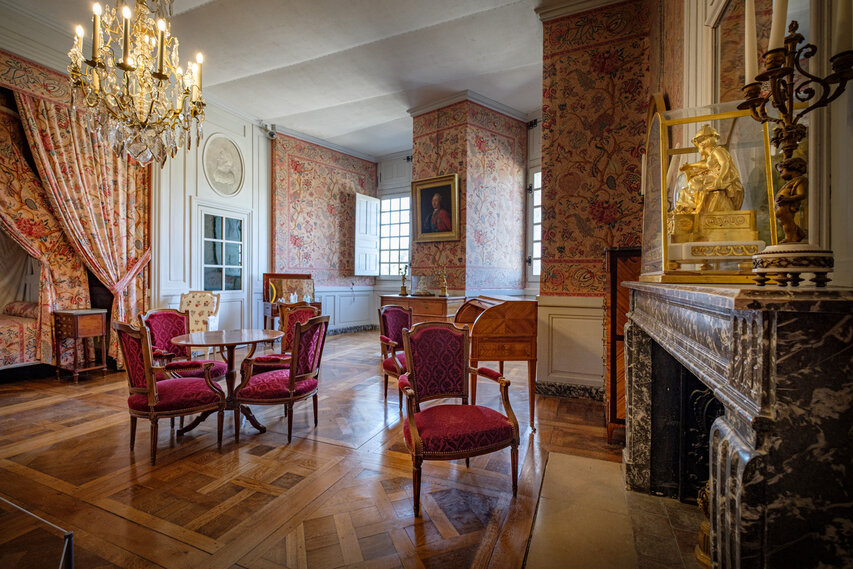 Das von ihm bewohnte Appartement ließ der Marschall wohnlich einrichten: die nackten Steinwände wurden mit Holztäfelungen versehen, Parkett wurde verlegt, und – die wichtigste Komfortsteigerung – Moritz ließ sich in seiner Heimat vier riesige Kachelöfen aus Fayence anfertigen und in seinen Räumen aufstellen. Mit diesen Öfen konnte er das Beheizungsproblem, das durch die vorhandenen offenen Kamine nur dürftig gemildert wurde, beheben. Der Marschall ließ außerdem in einem der Korridore ein Theater errichten.