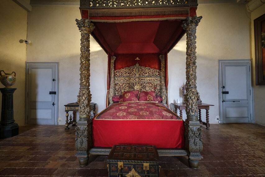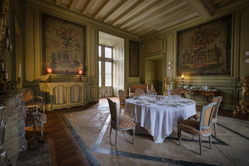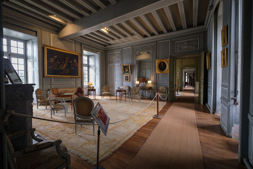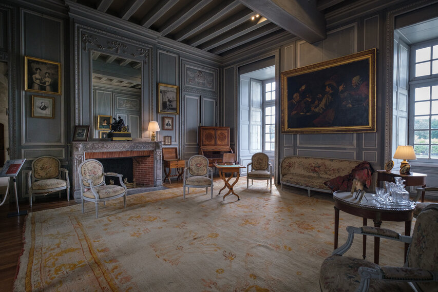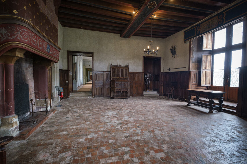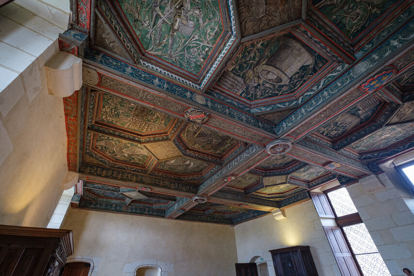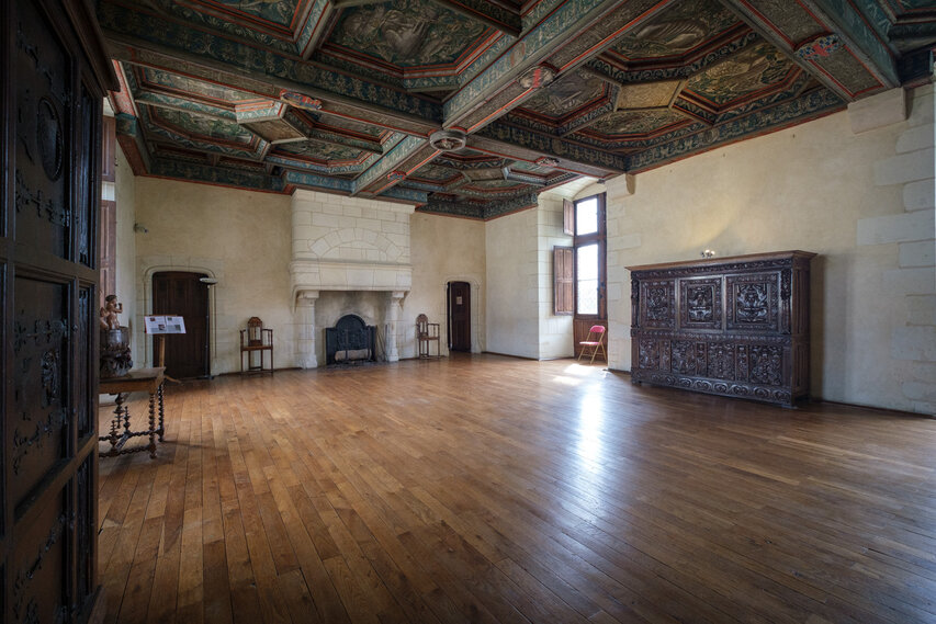 Bedeutendster Raum des Schlosses ist der Gardensaal in der ersten Etage mit einer in Frankreich einzigartigen bemalten Holzdecke. 24 beiderseits des Mittelbalkens angeordnete Bildfelder enthalten Tierdarstellungen mit bestimmtem symbolischen Sinn sowie figürliche Darstellungen zusammen mit Sprichwörtern, satirischen Texten sowie lustigen und gewagten Versen.
