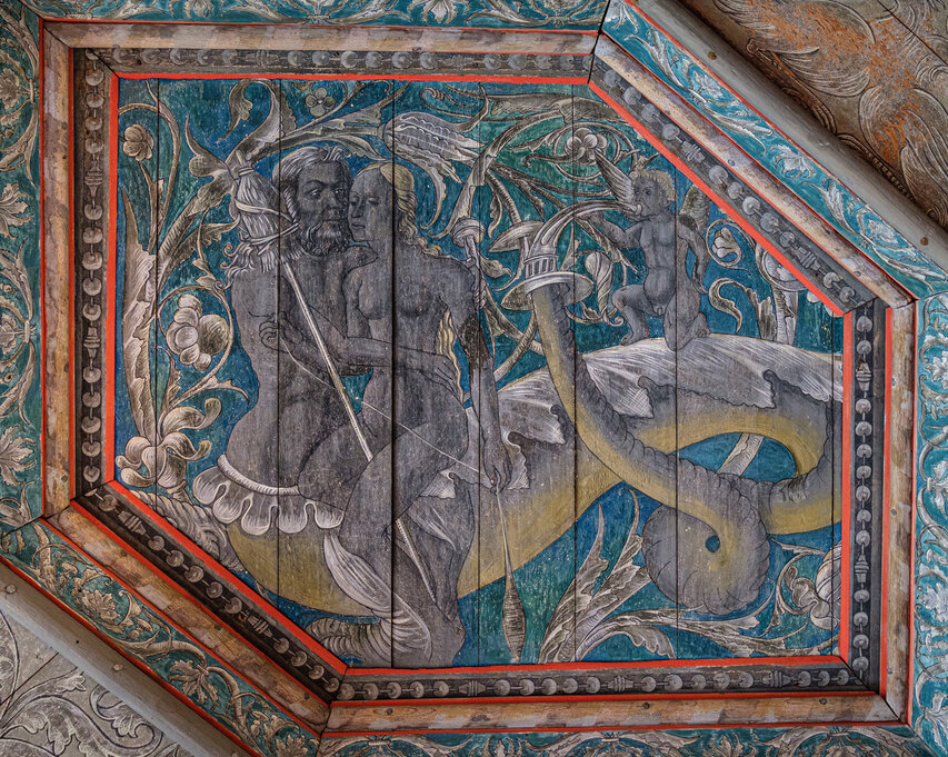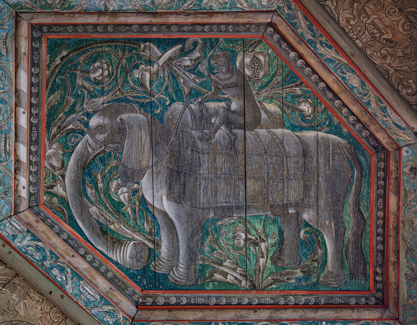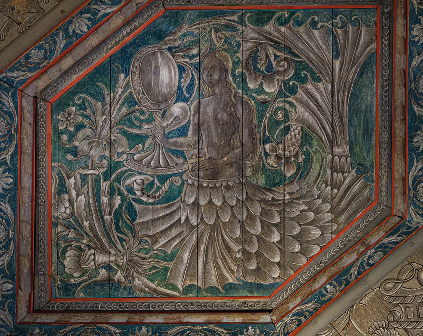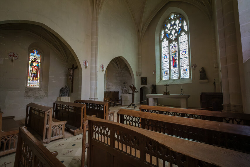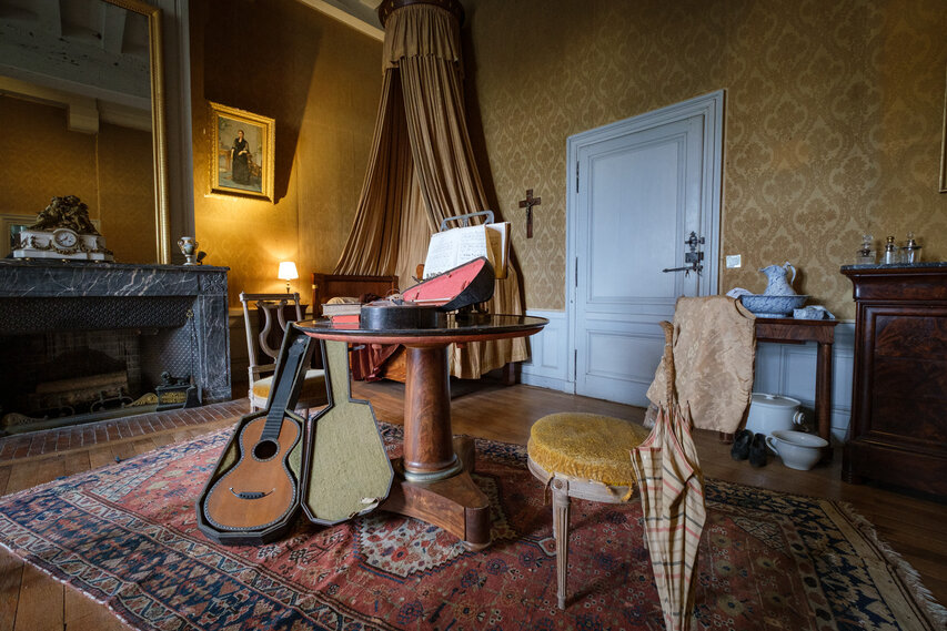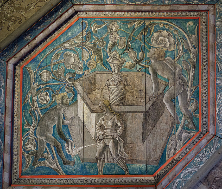 Bedeutendster Raum des Schlosses ist der Gardensaal in der ersten Etage mit einer in Frankreich einzigartigen bemalten Holzdecke. 24 beiderseits des Mittelbalkens angeordnete Bildfelder enthalten Tierdarstellungen mit bestimmtem symbolischen Sinn sowie figürliche Darstellungen zusammen mit Sprichwörtern, satirischen Texten sowie lustigen und gewagten Versen.