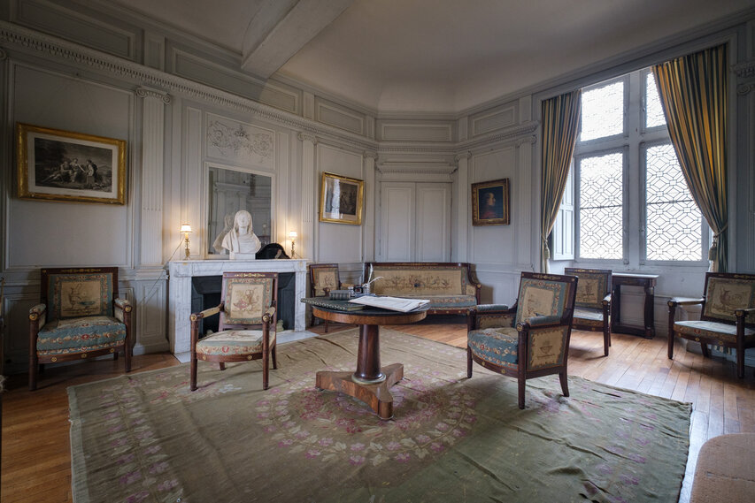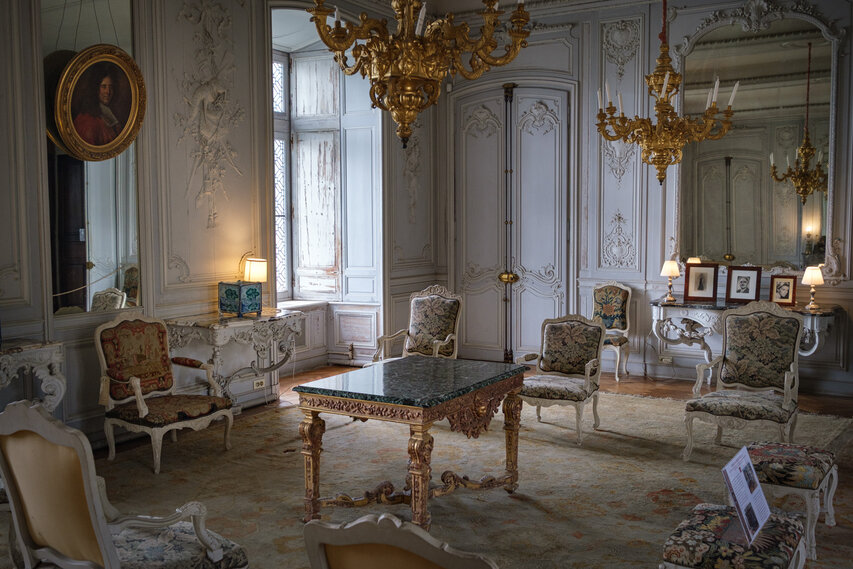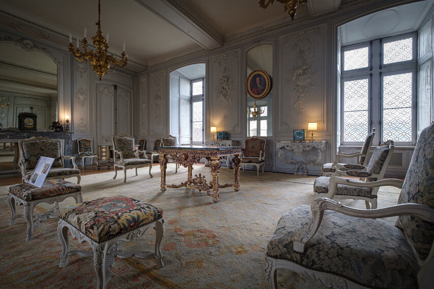 Im Inneren sticht vor allem der Große Salon Ludwigs XV. heraus, dessen feingeschnitzte Wandtäfelung mit Blütenmotiven geschmückt ist. Der Parlamentsaal mit seiner ursprünglichen Fußbodenverplattung, der als Speisesaal für feierliche Anlässe diente, wird von einem flachen Rippengewölbe überspannt; Hauptausstattungsstück ist sein mächtiger Kamin.
