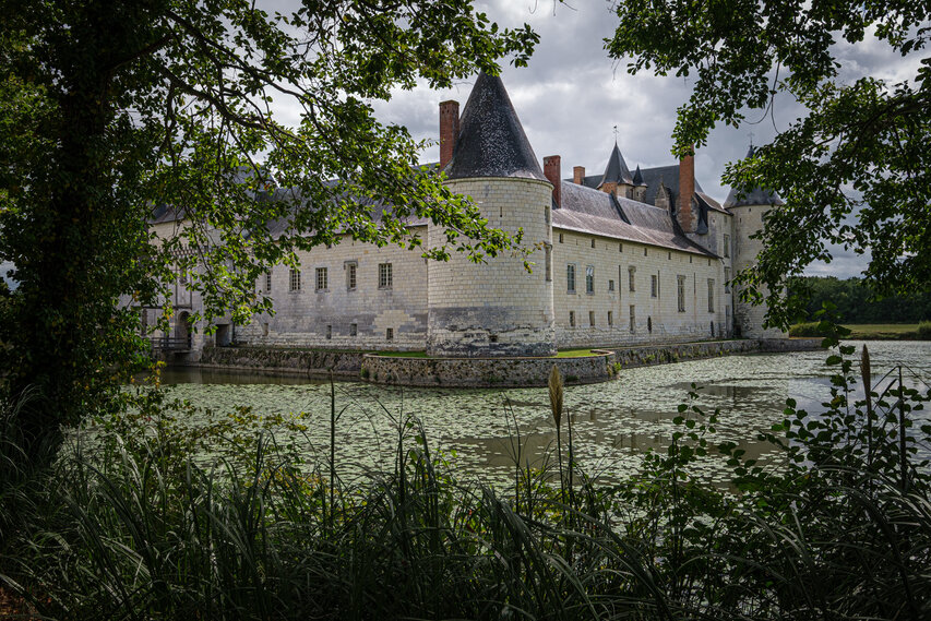 Von außen mutet das Schloss wie eine Festung an. Das auf rechteckigem Grundriss vierflügelig mit runden Ecktürmen errichtete Bauwerk ist von einem breitflächigen Grabenviereck umgeben. Der stärkste und mit 44 Metern höchste Turm ist der Donjon, dessen Gestaltung mit Wehrgang und zurückspringendem Obergeschoss sich an die Türme von Schloss Langeais anlehnt. Eine drei Meter breite Plattform rund um das Schloss diente im Verteidigungsfalle dem Aufstellen der Artillerie.