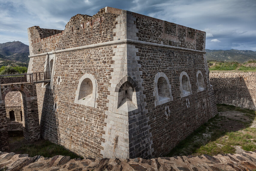 - Die Befestigungsanlage Fort carré et tour de l'Étoile à Collioure aus dem frühen 18. Jahrhundert im Norden der Stadt.