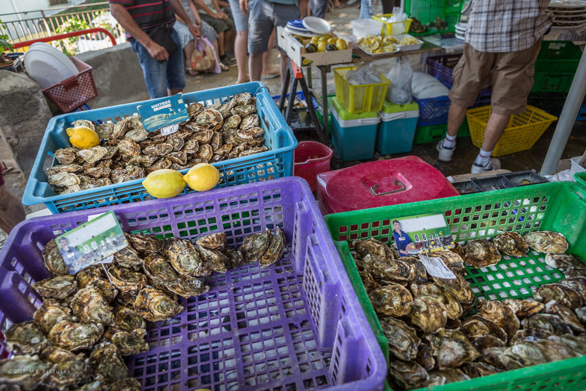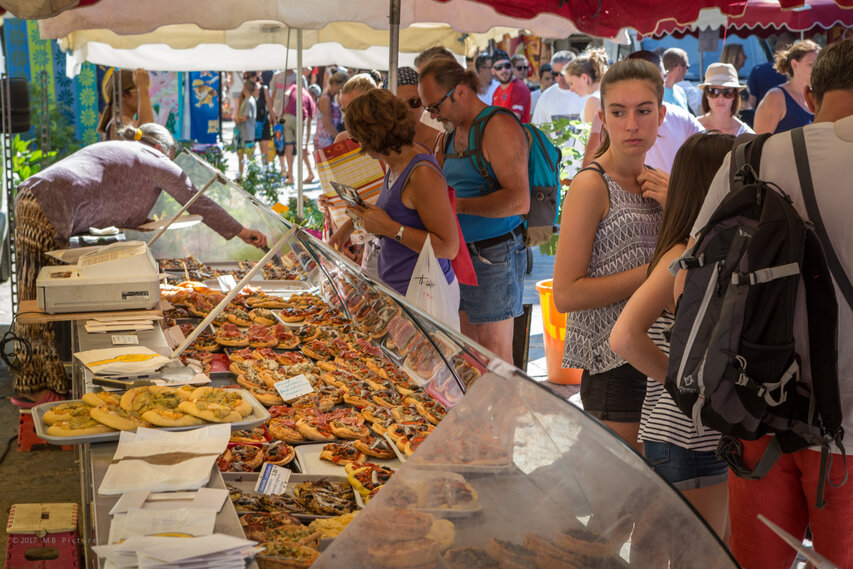 - Das Vieux Quartier du Mouré steigt mit seinen schmalen Gassen und Treppen vom Hafen neben der Kirche aus steil an und ist mit Blumen einladend geschmückt.