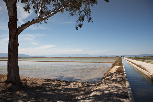 Das Ebrodelta ist das größte Reisanbaugebiet Spaniens. Auf ca. 75 % der Fläche (20.000 Hektar) wird Reis angebaut und bewässert. Der erste Anbau des Getreides geht auf das Jahr 1609 zurück. Heute werden jährlich etwa 90.000 Tonnen Reis produziert. Im Sommer, vor der Reisernte, breiten sich die Stängel der Reispflanzen wie ein grüner Rasen über das Delta aus.