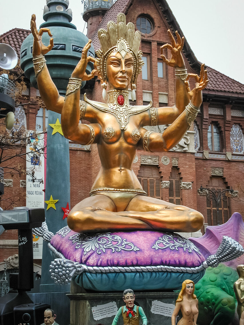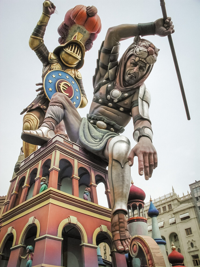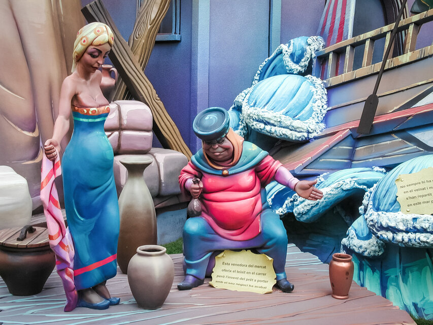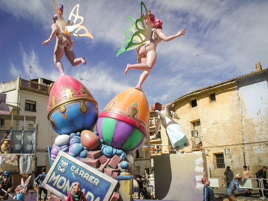 Aus den Puppen wurden nach und nach dreidimensionale Kunstwerke, die, aus Holz, Gips und Pappe gefertigt, jeweils ein bestimmtes Thema aufgreifen und karikieren. Heute sind die größten Skulpturen haushohe Gebilde, die oft mehr als zehn Tonnen wiegen und teilweise über 100.000 Euro kosten. Jedes Jahr gibt es einen Wettbewerb, bei dem die Bevölkerung die besten Fallas und die beliebteste Einzelfigur (ninot, Puppe auf Valencianisch) wählt. Diese Figur wird dann als Miniatur reproduziert und kommt ins Museum.