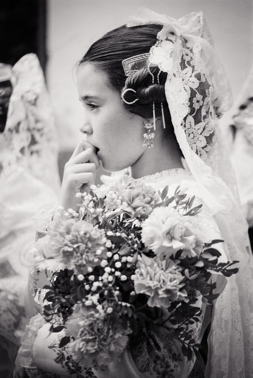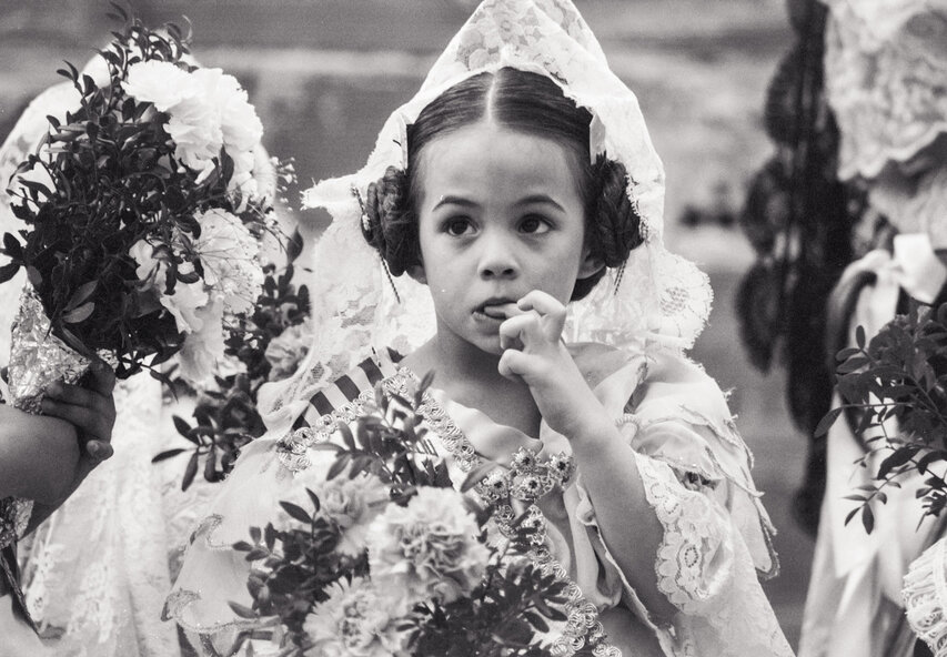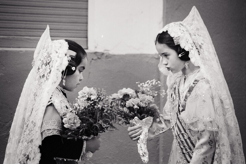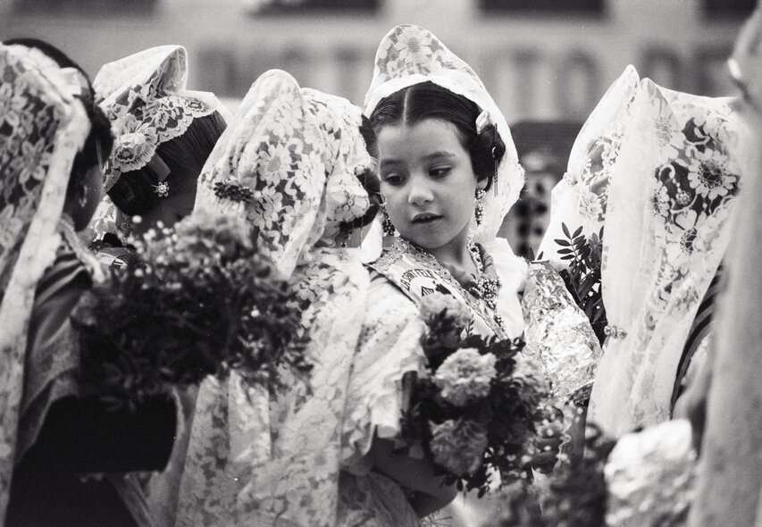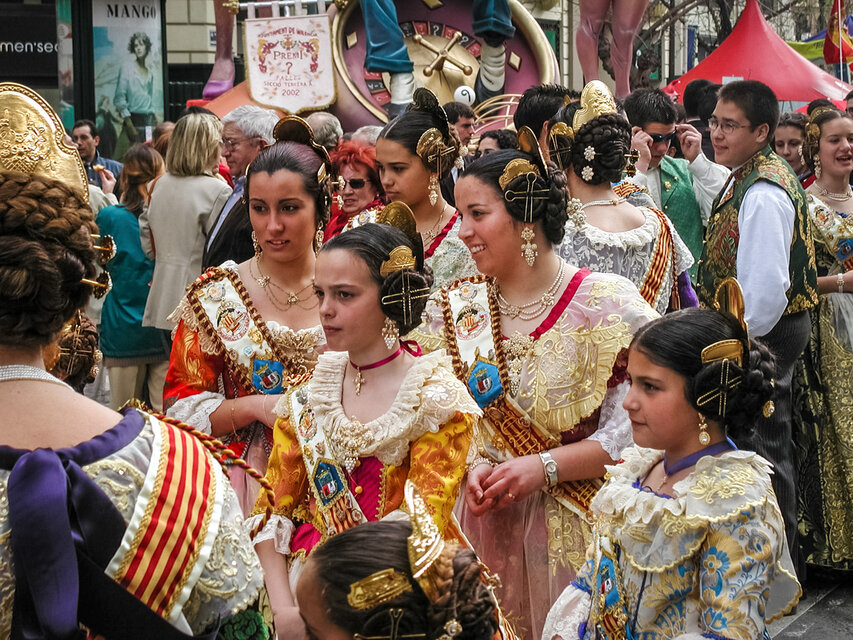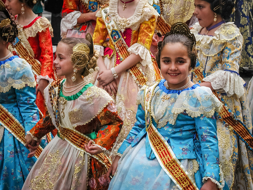 Zum offiziellen Programm gehört z. B. die Ofrena de Flors, der zweitägige "Opfergang" zu Ehren der Verge dels Desamparats (Heilige Jungfrau der Schutzlosen), die gleichzeitig die Stadtpatronin Valencias ist. An der Ofrena de Flors nehmen über 100.000 Männer, Frauen und Kinder in bunten Trachten teil. Die Herren kommen im traditionellen Anzug, die Damen in Röcken aus feiner Seide und teuerem Brokat, die Haare kunstvoll aufgesteckt. In den Gala-Kostümen steckt nicht selten ein ganzes Monatseinkommen; sie werden aber immer wieder getragen. Auf der Plaza de la Virgen wird eine 14 Meter hohe Holzstatue der Heiligen Jungfrau aufgebaut. Darauf wird aus den Blumen, die die Teilnehmer der Ofrenda bringen, das Madonnenkleid gesteckt. Fast 50 Tonnen Rosen und Nelken, Gladiolen und Tulpen, Anemonen und Lilien - Blumen, die aus ganz Spanien nach Valencia eingeflogen werden - werden benötigt.
