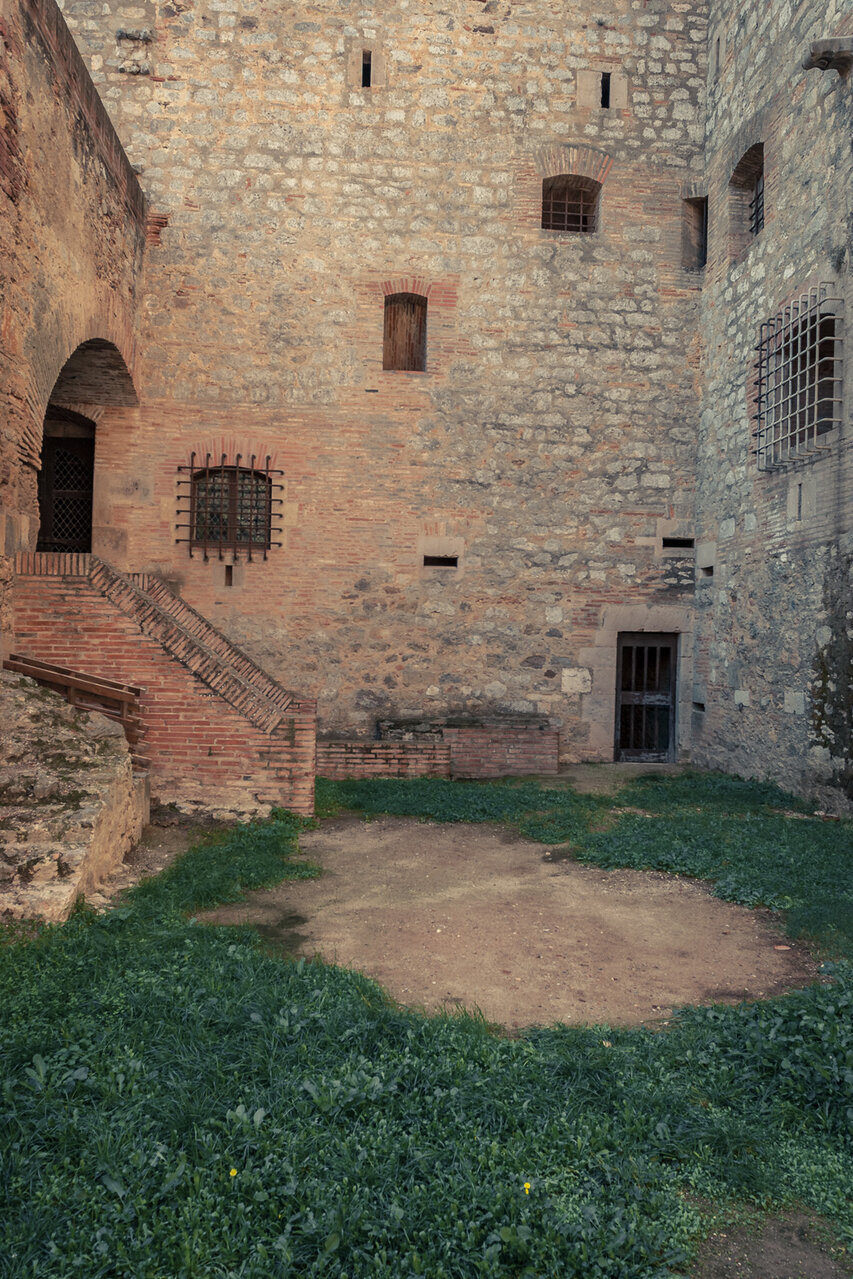 Besucher gelangen heute über den südlichsten Nasenturm in die Befestigungsanlage. Von diesem führt eine Brücke zu dem durch zwei zylindrische Türmchen eingefasstem Hauptportal der Festung. Schon im Durchgang zum Innenhof fällt die äußerst verwinkelte Bauweise mit zahlreichen Schießscharten und Überwachungsfenstern ins Auge. Der Hof wird auf drei Seiten von einer Säulenvorhalle eingefasst. In den angrenzenden Gebäuden befanden sich eine Gewölbekapelle, die Truppenunterkünfte und die Stallungen. Die Stärke der Garnison wird auf 1500 Mann und an die 100 Pferde geschätzt. Auf der Westseite des Innenhofes grenzt das Reduit an, das vom Burghof durch einen Graben und einen unvollendet gebliebenen Wall getrennt wird. Hier befanden sich das Pulverlager, ein Gefängnis, die Speicher für Nahrungsmittel, die Bäckerei, die Küche und ein Raum mit einem Wasserbecken, von dem aus das Quellwasser über ein System von Rinnen verteilt wurde.