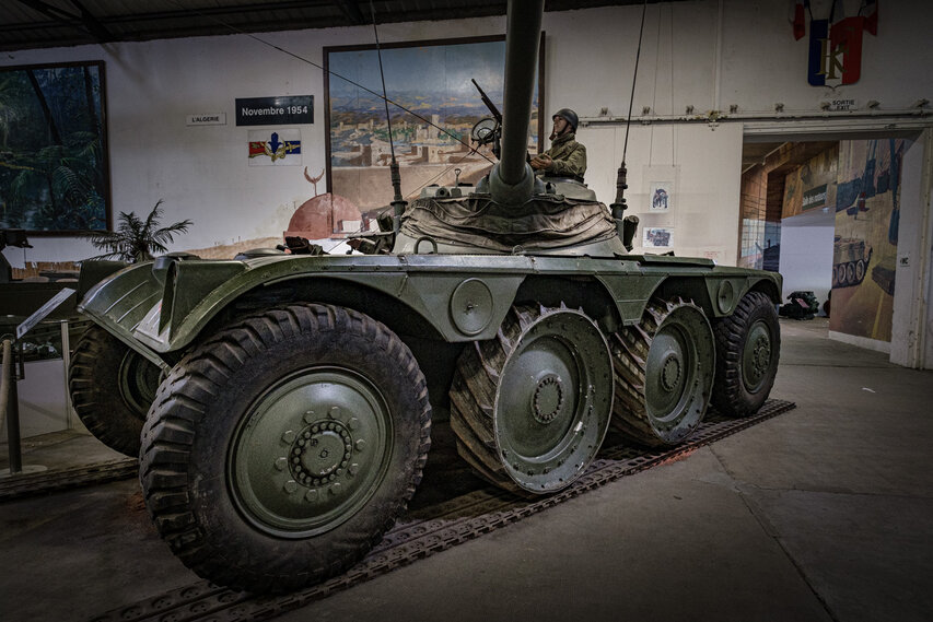 Huitième salle du musée, cette salle retrace l'évolution de l'Arme Blindée française, de 1945 à aujourd'hui. On commence avec la Guerre d'Indochine avec la présence d'un M29C Crabe, d'un Alligator LVT-4, d'un M24 Chaffee, d'un DUKW 353 et d'un Half Track M2. Il s'ensuit la Guerre d'Algérie avec l'EBR, la Jeep ENTAC et la Jeep Delahaye, une étonnante Vespa TAP 56 ainsi qu'un Ferret Mk II. Tous les chars français sont là, comme l'ARL 44, l'AMX-30, l'AMX-40, l'AMX-10 RC et le Leclerc. Un AMX 30 EBD (Engin Blindé de Déminage) ayant combattu en Irak en 1991 est également exposé. On retrouve également un prototypes emblématique : l'AMX-50 120 surbaissé.