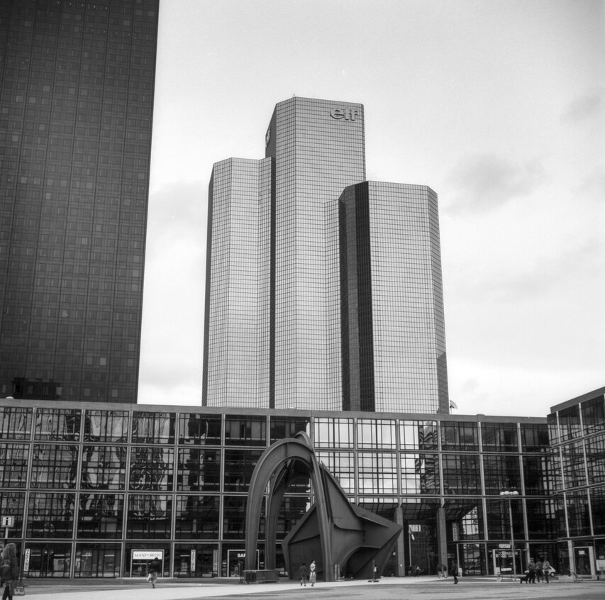 In La Défense, einem seit Ende der 1950er Jahre in den westlichen Vororten Courbevoie, Nanterre und Puteaux entstandenen Büro- und Geschäftsviertel, in dem Wolkenkratzer dominieren, befindet sich als westliche Fortführung der berühmten Pariser Achse die so genannte Grande Arche. Der 110 Meter hohe Kubus ist ein Entwurf des Architekten Johan Otto von Spreckelsen, der von Paul Andreu ausgeführt wurde. Er bildet den westlichen Ausgangspunkt der axe historique, die zusammen mit dem Arc de Triomphe und dem Arc de Triomphe du Carrousel beim Louvre eine Gerade bildet. Die Einweihung erfolgte mit dem Gipfeltreffen der Staatschefs der G7 am 14. Juli 1989 zur 200-Jahr-Feier der Französischen Revolution. Das Gebäude dient dem französischen Handels- und Verkehrsministerium als Sitz.