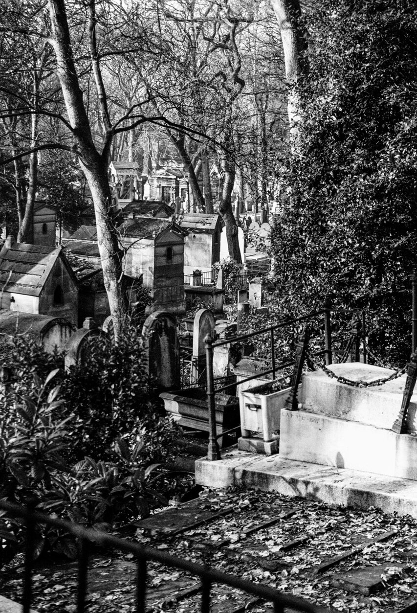 Zu den Grünanlagen zählen in Paris auch die Friedhöfe. Zu Beginn des 19. Jahrhunderts wurden außerhalb der damaligen Grenzen der Hauptstadt drei und in Paris ein neuer Friedhof angelegt: der Cimetière de Montmartre im Norden, der Cimetière du Père Lachaise im Osten, der Cimetière du Montparnasse im Süden sowie der Cimetière de Passy. Diese Friedhöfe sind aufgrund ihrer Stille und der Gräber vieler berühmter Persönlichkeiten beliebtes Ziel der Spaziergänger und Touristen.