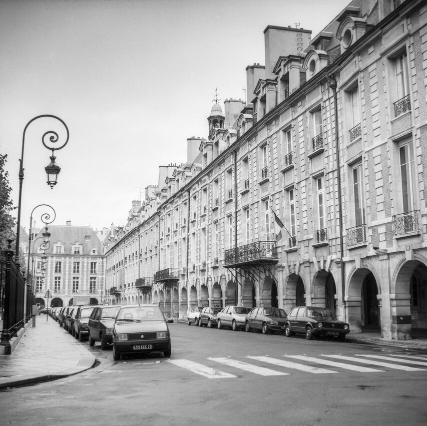 Die quadratische Place des Vosges (1605–1611), früher Place Royale im Le Marais (4. Arrdt.) bietet ein einzigartig geschlossenes Ensemble von Bauten aus Back- und Quaderstein im Stil des frühen 17. Jahrhunderts. Die Mitte des Platzes ziert das Reiterstandbild von Ludwig XIII.