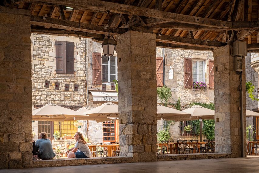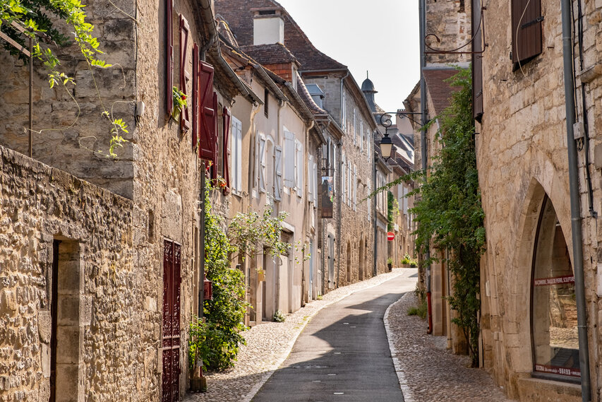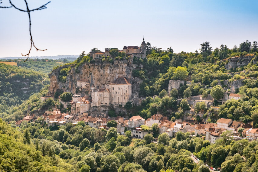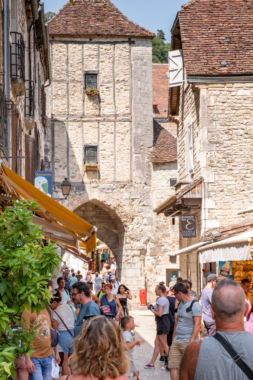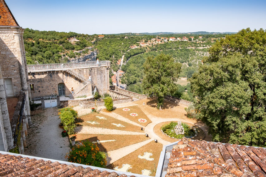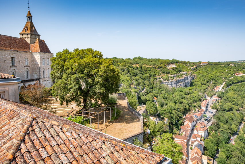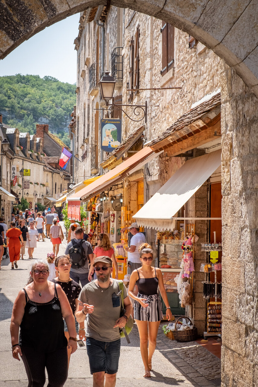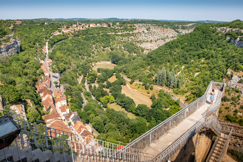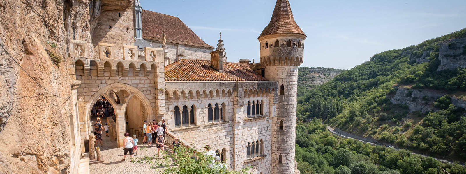 Die drei Ebenen, auf denen Rocamadour liegt, sind jede für sich und in ihrer Gesamtheit sehenswert. In der unteren Ebene befindet sich das Dorf, dessen mittelalterliche Häuser sich an die steilen Abhänge über der Schlucht des Flusses Alzou schmiegen. Von dort können die Besucher die Große Treppe zur heiligen Stadt (Sanctuaire) aus dem 12. Jahrhundert hinaufsteigen.