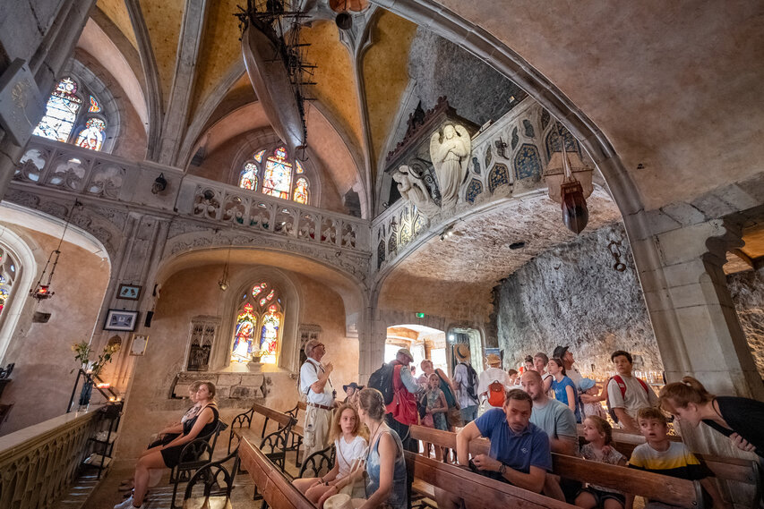 Einer Legende zufolge soll das Schwert, das in der Felswand steckt, das sagenumwobene Durendalschwert aus dem Rolandslied sein.