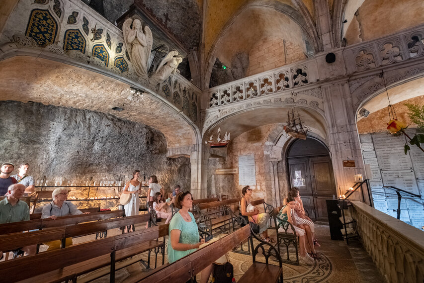 In dieser zweiten Ebene befinden sich sieben Gotteshäuser: Das bedeutendste ist die Marienkapelle Notre Dame de Rocamadour, die über der Krypta des heiligen Amadour steht. Weiterhin bedeutend ist die Basilika Saint-Sauveur, die zusammen mit der Krypta seit 1998 als Teil des Weltkulturerbe der UNESCO „Jakobsweg in Frankreich“ ausgezeichnet ist. Ebenso finden sich dort die kleineren Kapellen: St. Jean-Baptiste, St. Blaise, St. Anne und St. Michel. Ein Museum mit sakraler Kunst, in dem zahlreiche Reliquienschreine, religiöse Gemälde und Statuen gezeigt werden, findet sich dort ebenso. Es erklärt die Geschichte des Wallfahrtsortes. Darüber hinaus gibt es ein Zentrum für geistliche Musik, das Konzerte ausrichtet und Chöre betreut.