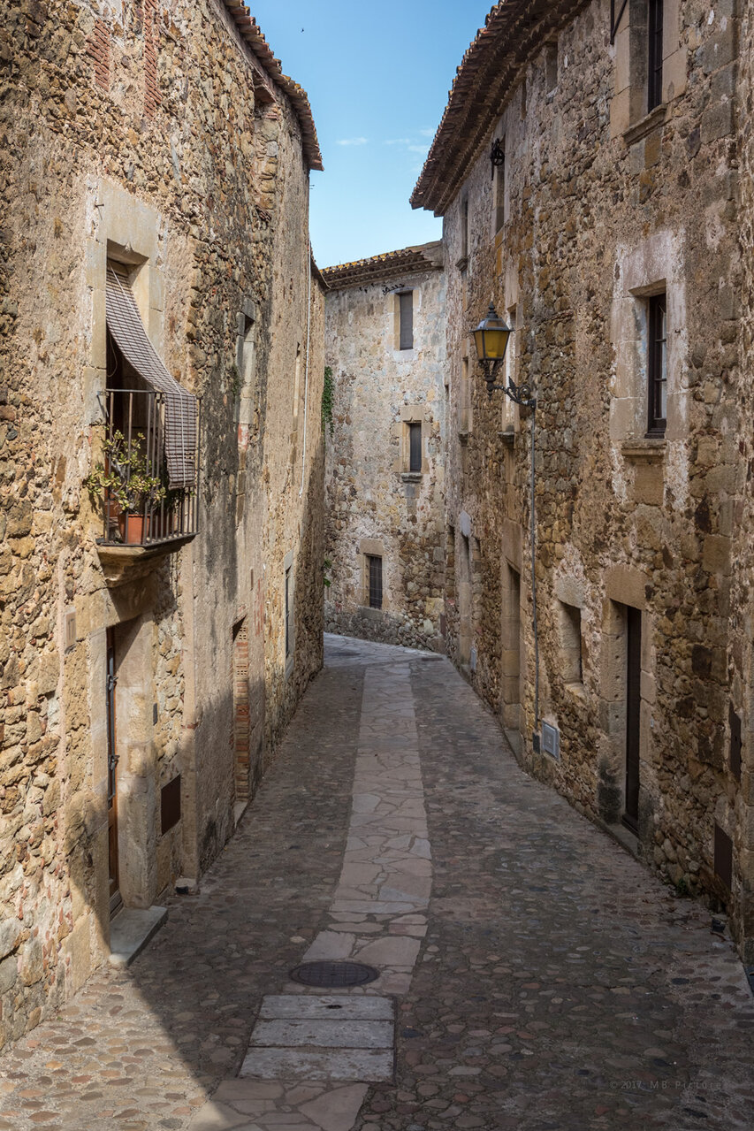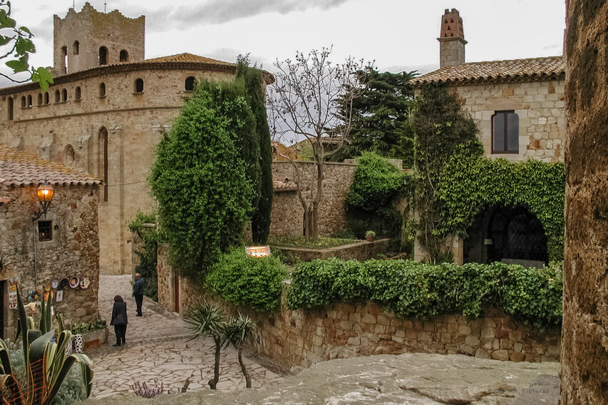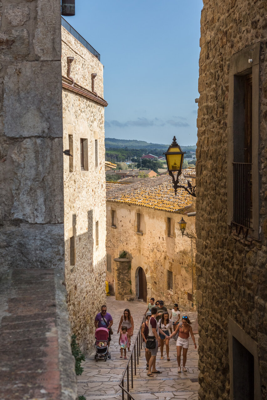 Dentro del barrio gótico de la villa hay calles empedradas y arcos de medio punto, fachadas con ventanas ojivales y balcones de piedra. La muralla de la ciudad consta de cuatro torres cuadradas que datan del siglo IV. El mirador de Josep Pla (desde donde se pueden ver los campos del Ampurdán y las islas Medas), la plaza Mayor, las tumbas en la calle Mayor y la iglesia de San Pere son otros rincones turísticos de la ciudad. Hay también un Museo de Arqueología.