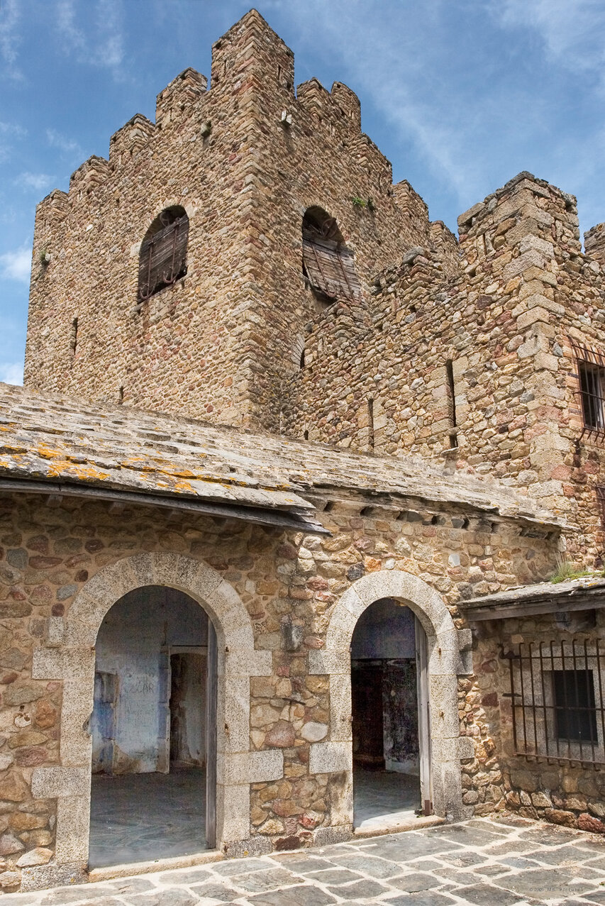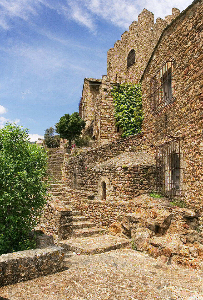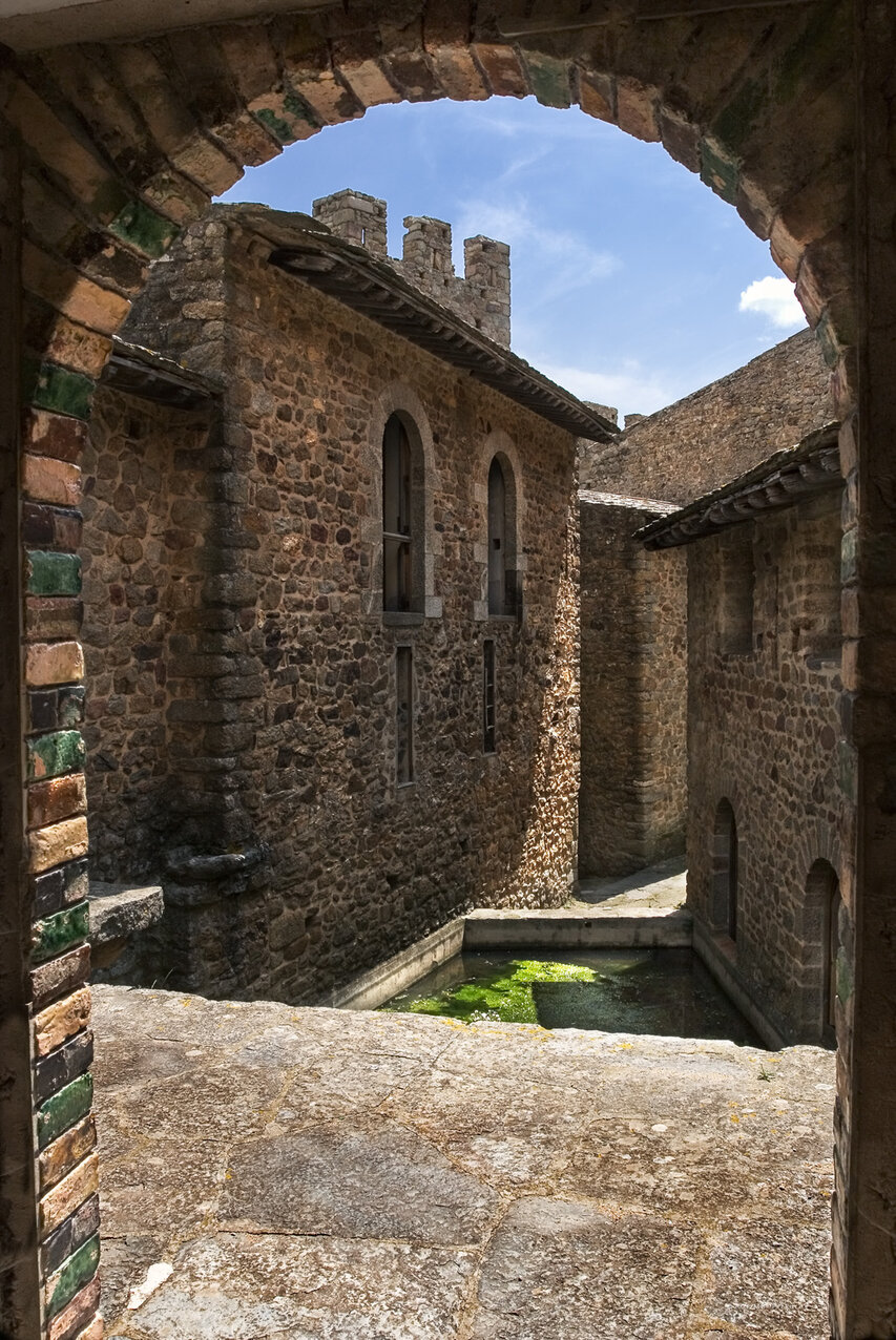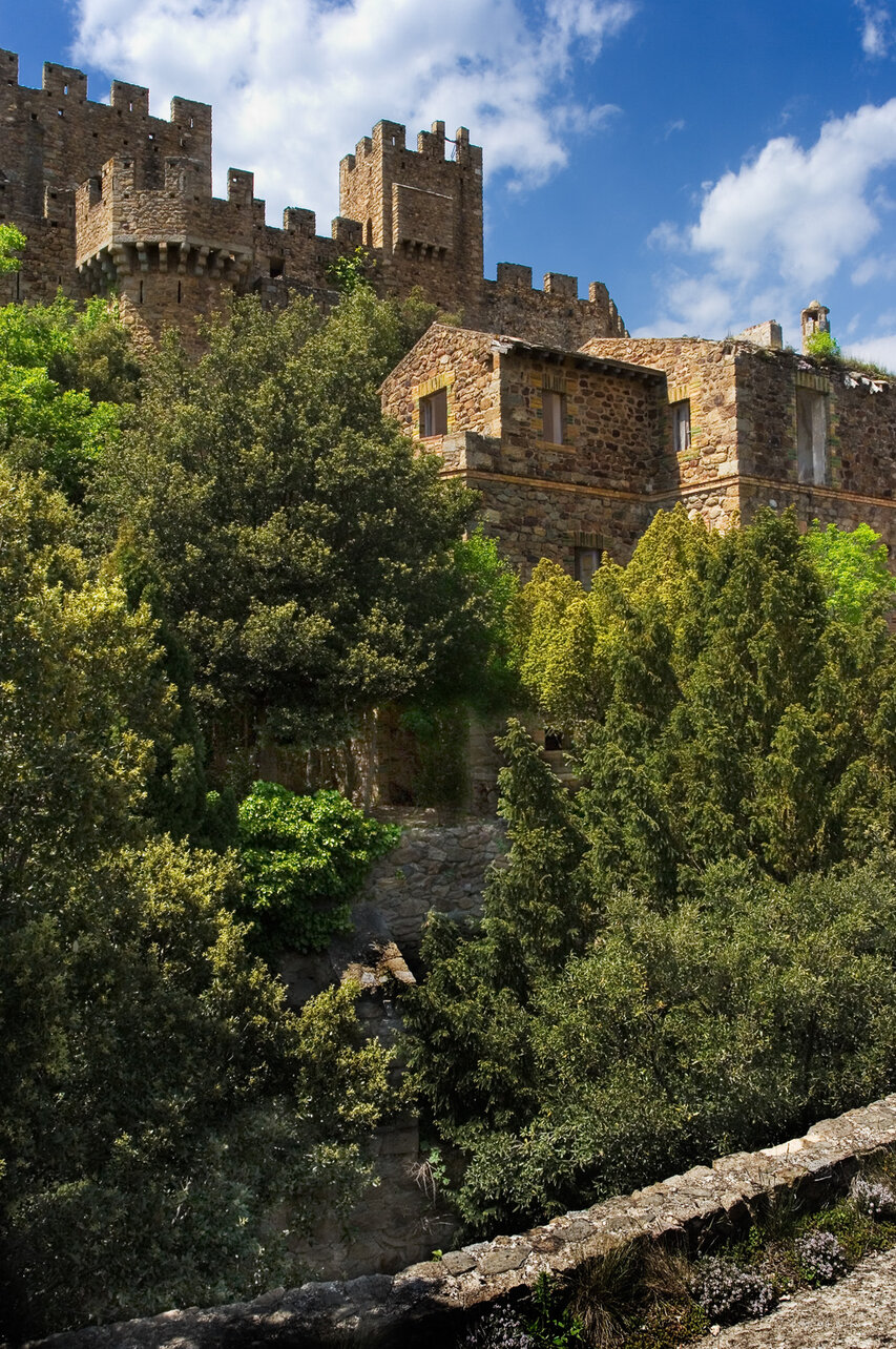 Sin embargo, a diferencia de otros ejemplos de reconstrucciones neomedievales próximas (Carcasona), el estilo elegido no desdice el propio del área mediterránea. Las obras fueron dirigidas por el maestro de casas Alexandre Comalat, que reconstruyó los aún vistosos restos del edificio medieval con el mismo trazado y la misma piedra de granito de la montaña con la que había sido construido, por lo que actualmente es muy difícil distinguir la parte original de la reconstruida.