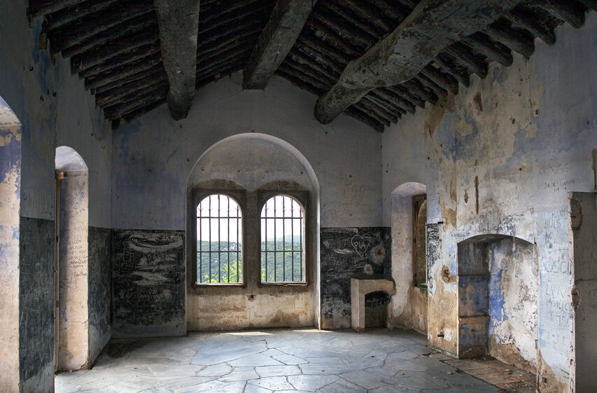 Trotz des traurigen Zustandes, in dem sich das Schloß heute befindet, ist es immer noch, auch wegen seiner Lage, von zauberhaftem Reiz. Man ahnt etwas von seiner einstigen Pracht und einer langen, wechselhaften