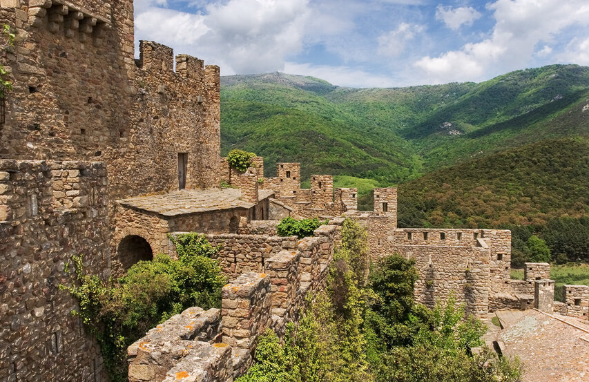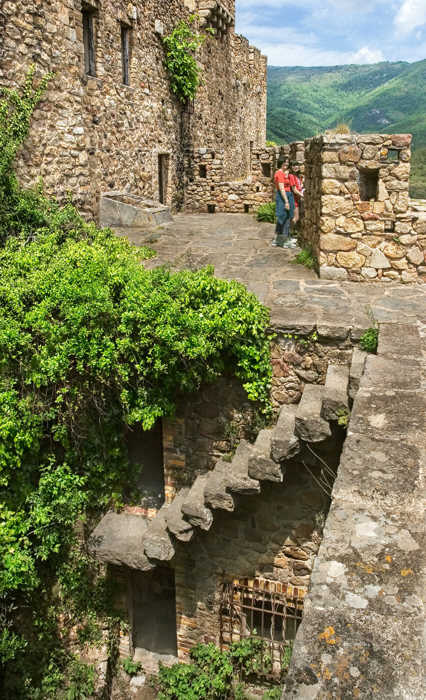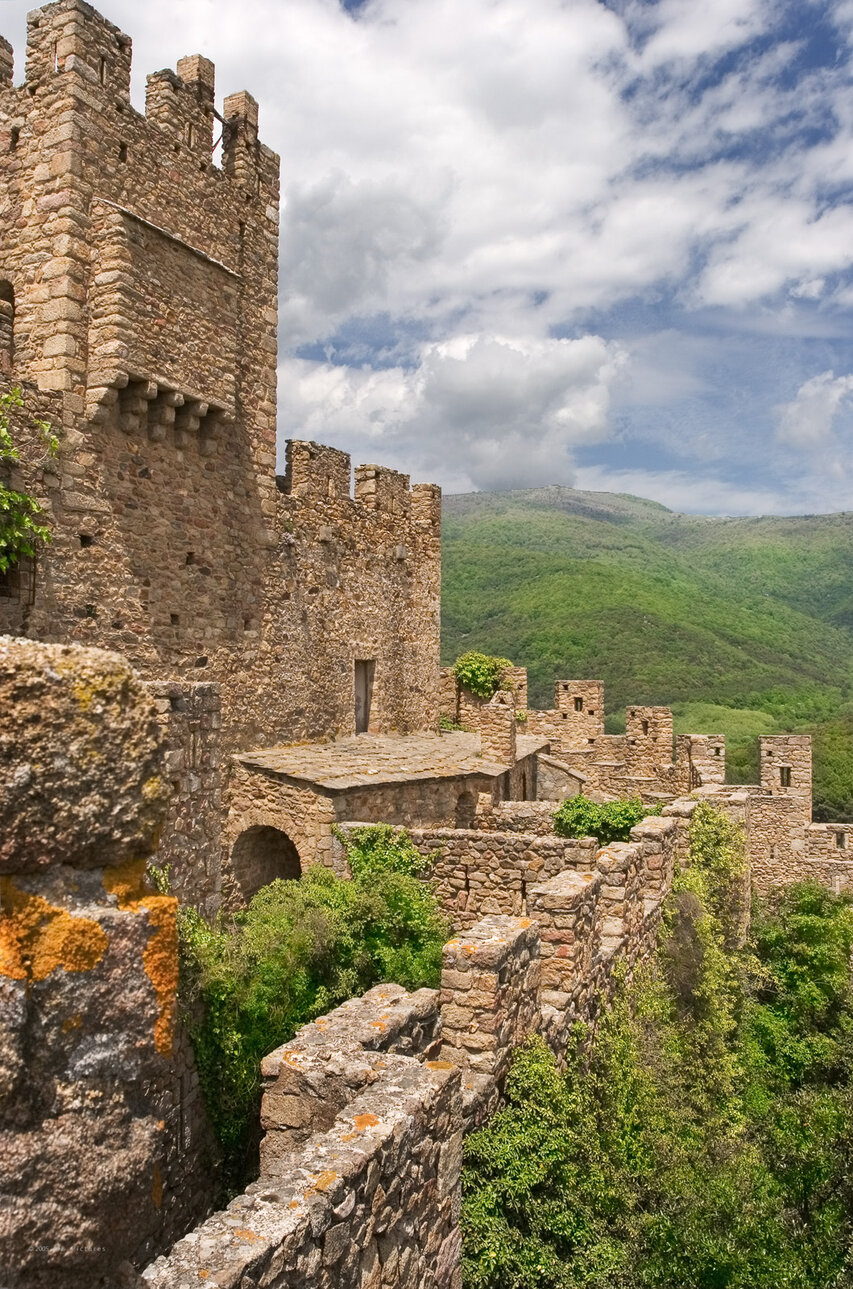 Im Laufe der Zeit ist eine Befestigungsanlage auf dem Berg entstanden. Im 11./!2. Jahrhundert wurde die Burg von den Grafen von Roussillon ausgebaut. Warum sie das taten und weshalb sie Wert auf diese Festung legten, versteht man, wenn man die Lage der Burg betrachtet. Sie liegt im Grenzgebiet der verschiedenen Herrschaftsbereiche und an Übergangswegen. Ursprünglich war das Rossello auch mit der Grafschaft Empuries-Peralada verbunden, wurde dann aber durch Erbteilung abgetrennt, genauso wie Peralada. So entstand also die Situation, dass die Burg den Grafen von Rossello gehörte, aber auf dem Gebiet der Herren und Vizegrafen von Peralada lag, deren Oberherren wiederum die Grafen von Empuries waren. Diese Adligen waren zwar alle miteinander verwandt, und beschworen auch immer wieder ihre Einigkeit in Verträgen. Sie waren aber trotzdem auf Wahrung und Erweiterung ihres Besitzes und ihrer Rechte bedacht. So entstanden oft Streitigkeiten und lokale Kriege. Und auch die Burg erlebte wohl manchen feudalen Kleinkrieg. Doch für den oft zitierten "Krieg von Requesens" (um 1150) zwischen dem Grafen Pons Hug II. von Empuries und dem Grafen Gaufried III. von Rossello gibt es keinen urkundlichen Beleg.