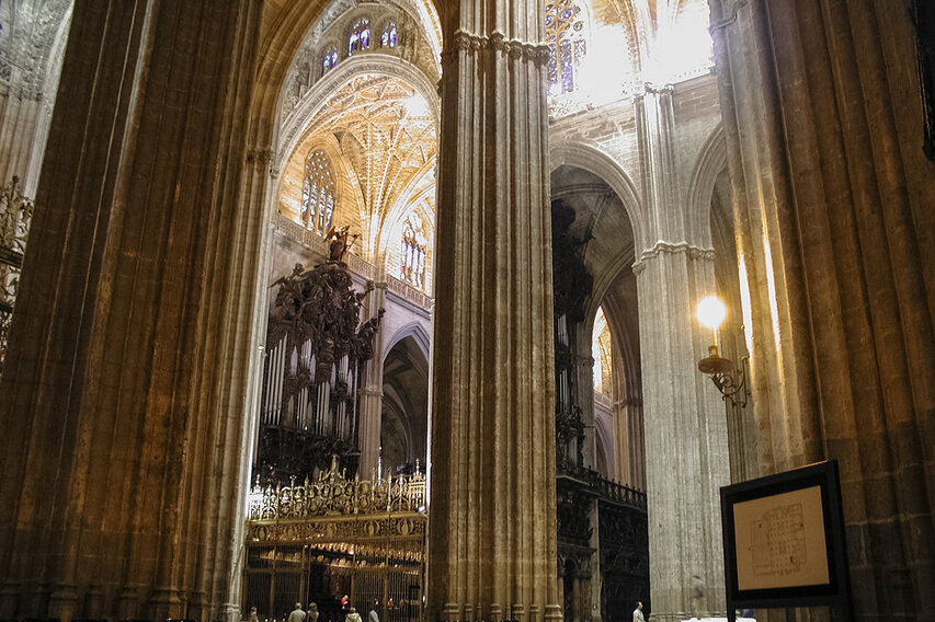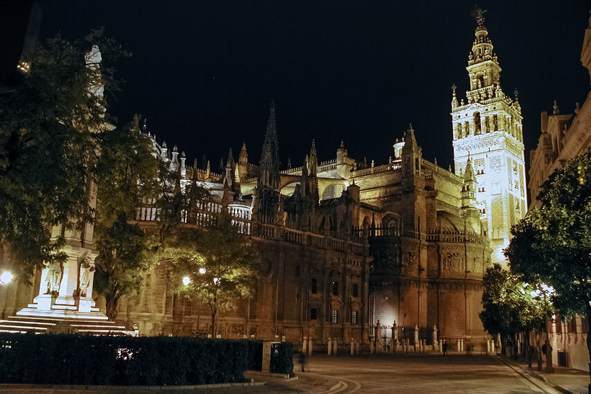 Die Kathedrale Maria de la Sede wurde 1401 bis 1519 in die bestehende maurische Moschee eingebaut. Sie hat fünf Schiffe, zahlreiche mit Kunstschätzen (Gemälde von Murillo, Velázquez, Zurbarán) geschmückte Seitenkapellen, bedeutende Glasmalereien, eine ungewöhnlich große Orgel und viele Grabmale bedeutender Persönlichkeiten. Seit 1987 gehört das Bauwerk zum Weltkulturerbe der UNESCO.
