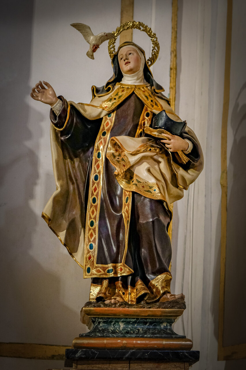 St. Nikolaus und Petrus, gotisch, im Innern churrigueresk, bemerkenswerte Deckenmalereien;