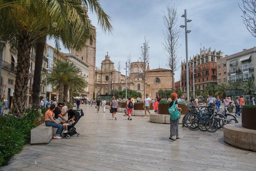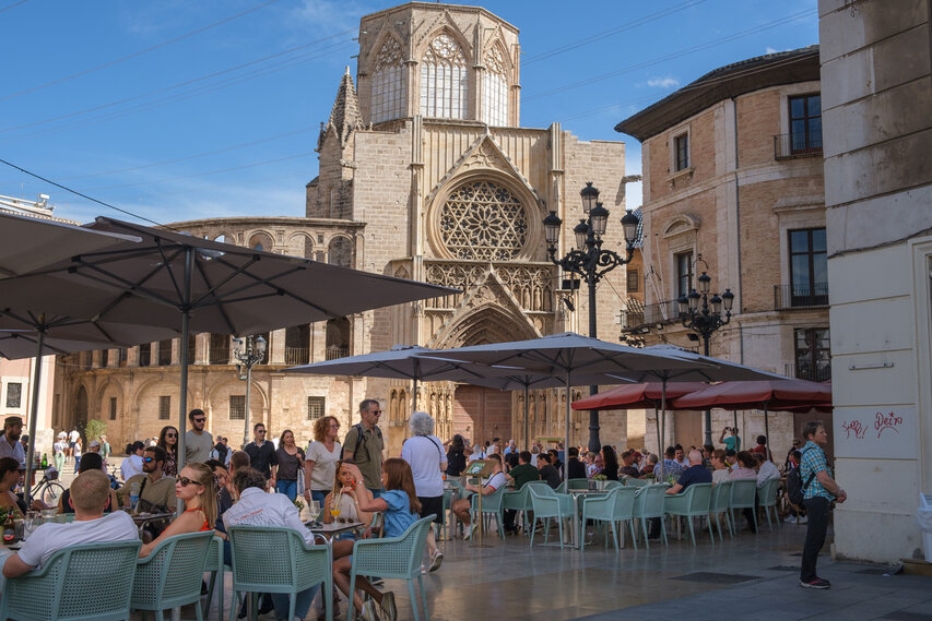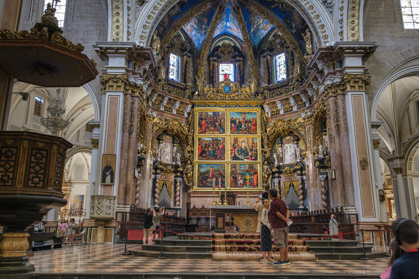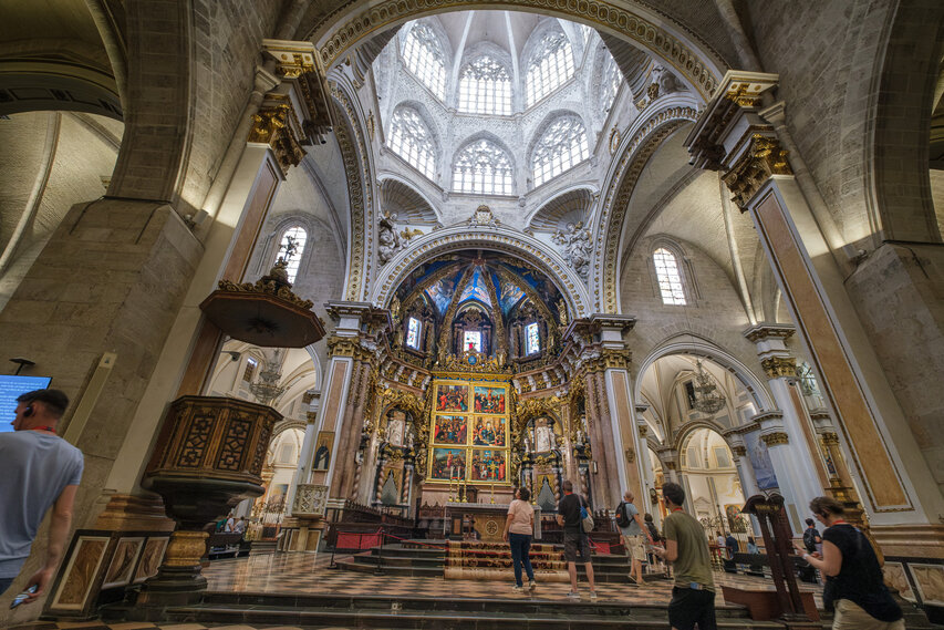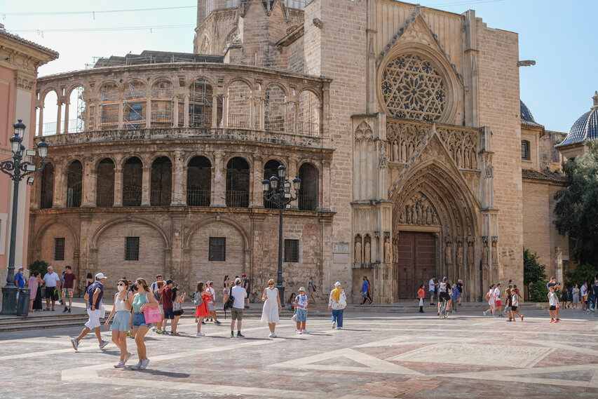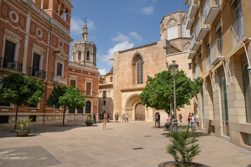 Die Kathedrale von Valencia wurde ab 1262 auf den Grundmauern einer alten Moschee errichtet. Bis Ende des 18. Jahrhunderts wurde das Gebäude oftmals umgestaltet. Auffällig sind die Puerta de los Apóstoles, aus dem 14. Jahrhundert, die Puerta del Palau, das älteste Portal der Kathedrale, romanisch mit Einflüssen aus dem Mudéjar, und die Puerta Barroca. Der an die Kathedrale angebaute gotische Turm Torre del Miguelete aus dem 14. Jh. gilt als eines der Wahrzeichen der Stadt.