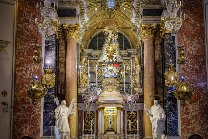 Santos Juanes Mercat (Johannes der Täufer und Evangelist), gotische Pfarrkirche bei der alten Börse, 1598 im Barockstil erneuert. Inneres mit Fresken von Antonio Palomino;