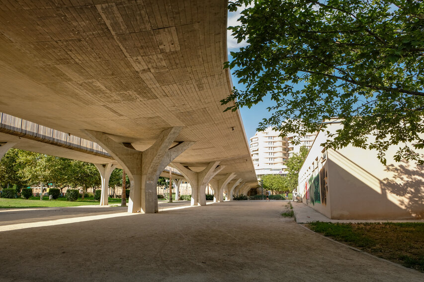 Ein katastrophales Hochwasser des Turia im Jahr 1957, bei dem Menschenleben zu beklagen waren und das auch beträchtlichen materiellen Schaden verursachte, war von großer Bedeutung für die weitere Stadtentwicklung. Der spanische Staat und die Stadt Valencia beschlossen den Plan Sur, der vorsah, das Flussbett trockenzulegen und den Fluss in weitem Bogen südlich der Stadt vorbeizuführen. Die entsprechenden Wasserbau-Arbeiten wurden in den 1970er Jahren vollendet. Der ursprüngliche Plan sah vor, in dem trockengelegten Flussbett eine Stadtautobahn anzulegen, wovon dann aber später aus Kostengründen und aufgrund des Widerstands der Bevölkerung Abstand genommen wurde. Vielmehr sollte es in den Jardín del Turia, einen Großpark, verwandelt werden. Der katalanische Architekt Ricardo Bofill wurde dafür 1981 mit der Grundsatzplanung beauftragt. So erhielt eine der bis dahin grünärmsten Städte Spaniens mit der Umsetzung des Projekts eine das ganze Stadtgebiet durchziehende „Grüne Lunge“ mit Park-, Sport- und Freizeitanlagen.