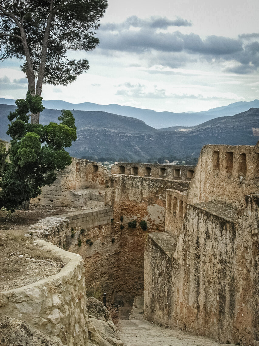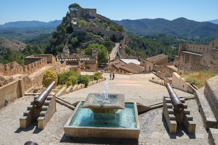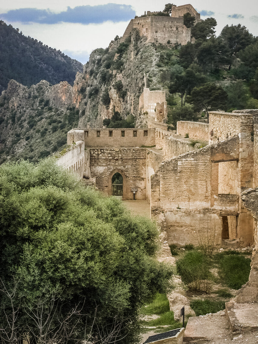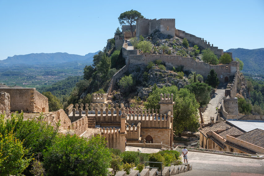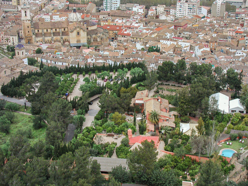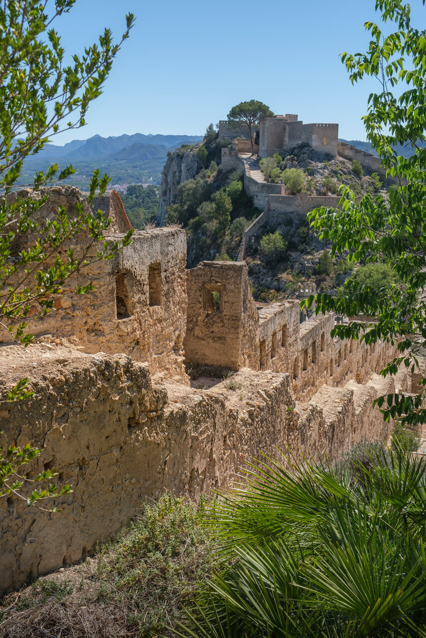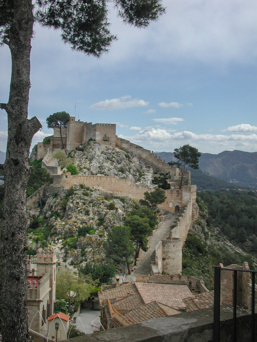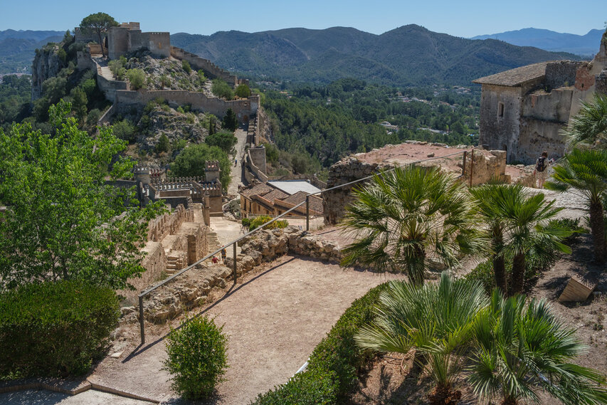 Die Burg (El Castillo) erstreckt sich über den gesamten Rücken des südlich der Altstadt gelegenen Berges Vernissa. Hier finden sich Überreste aus fast allen Epochen spanischer Geschichte, von den Iberern über die Römer und Mauren bis hin zur Gotik. Südlich des Burgberges liegt das Tal und der Ortsteil Bixquert.