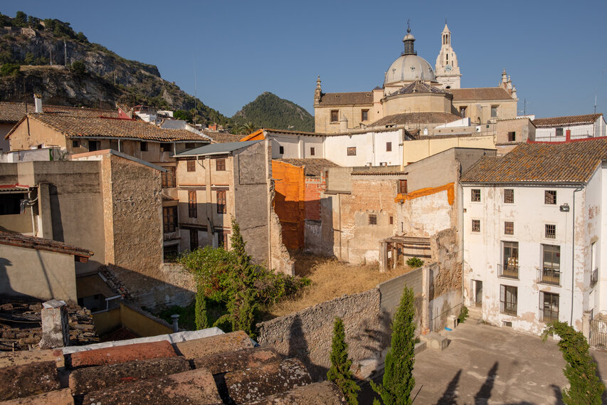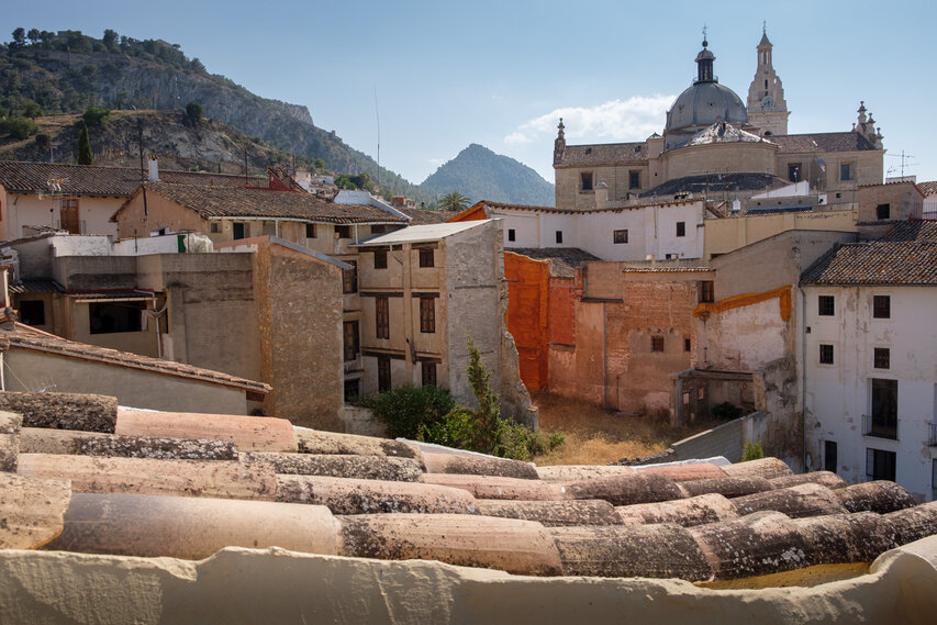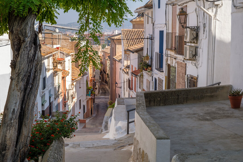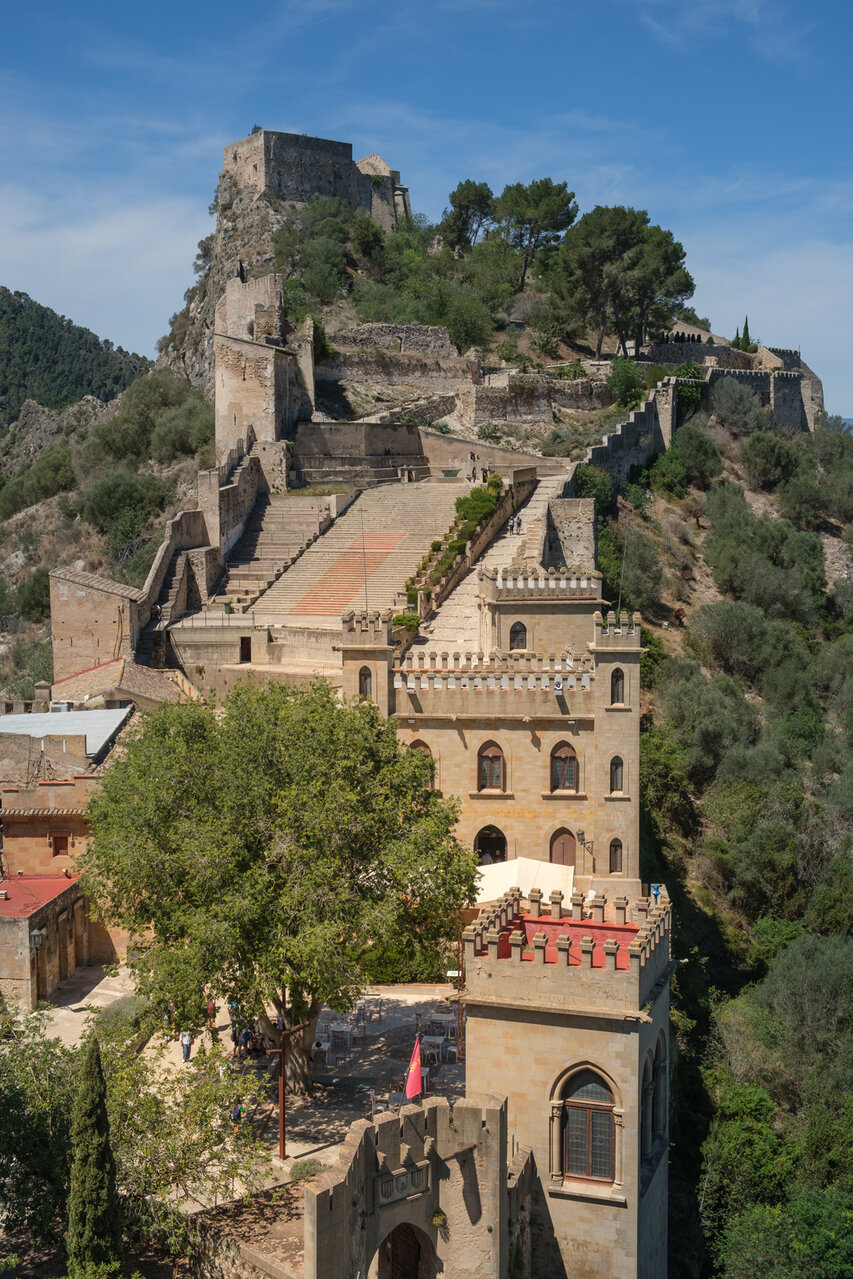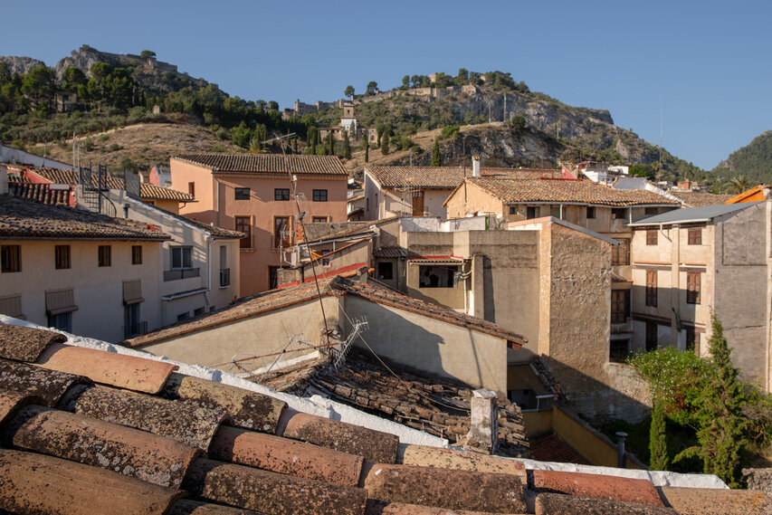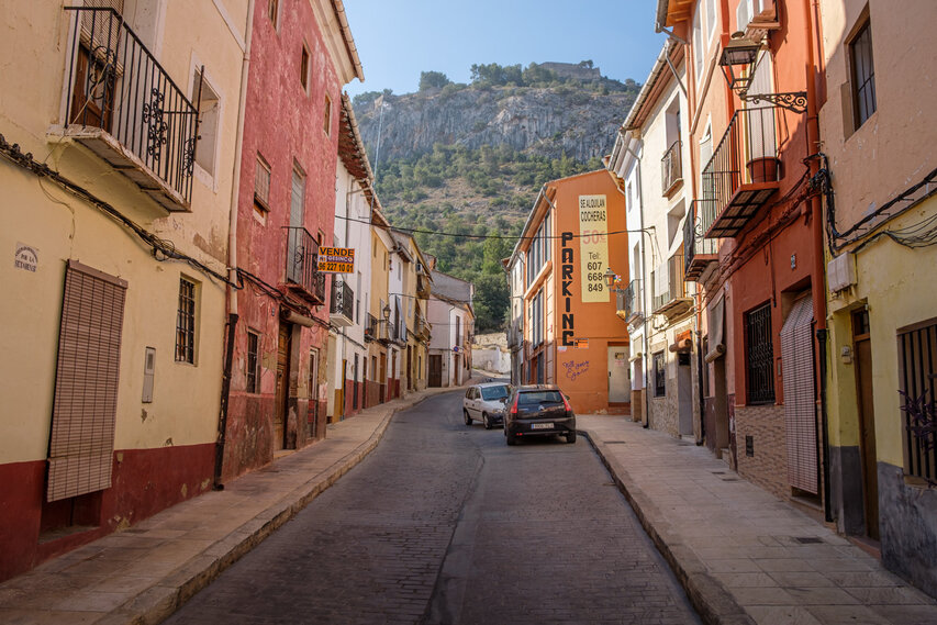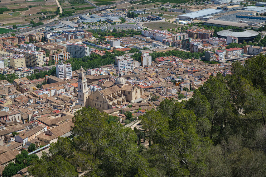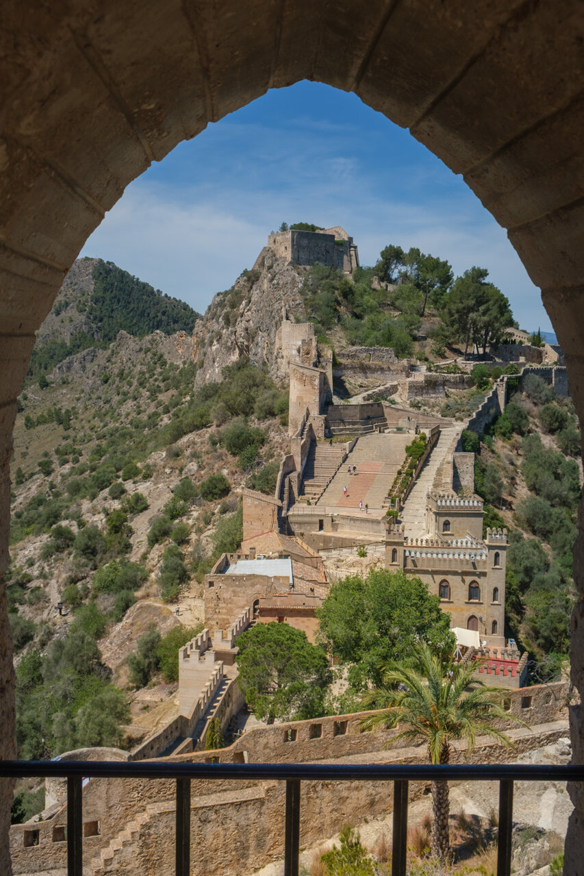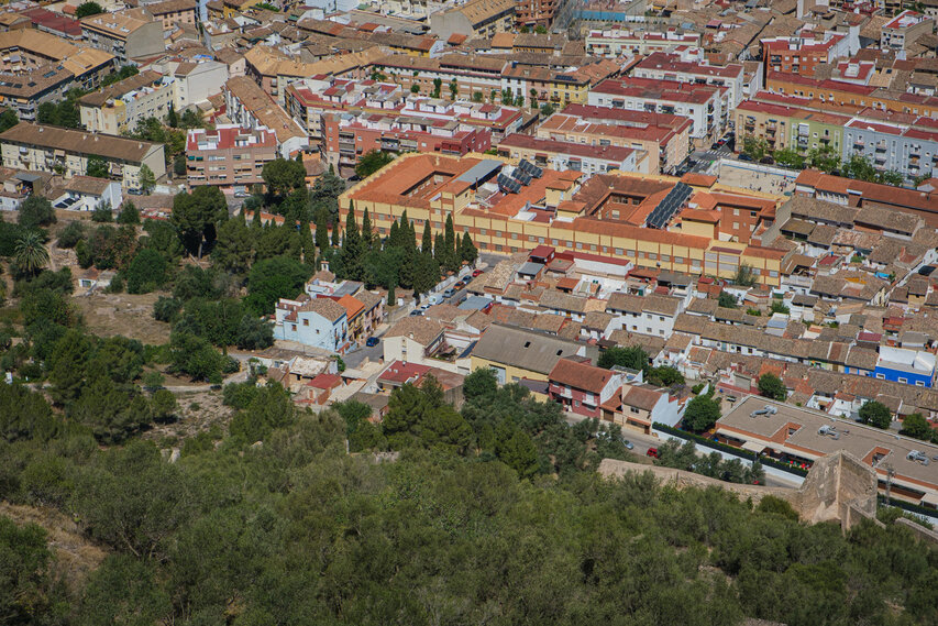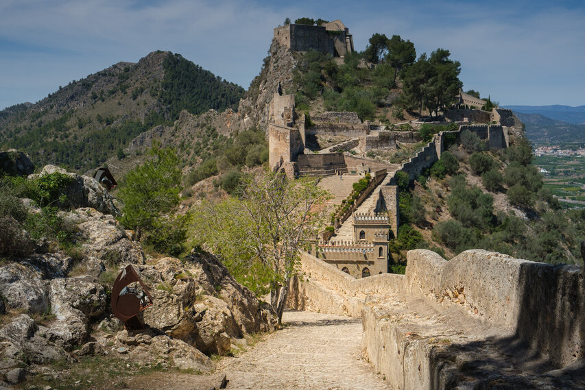 Die Burg (El Castillo) erstreckt sich über den gesamten Rücken des südlich der Altstadt gelegenen Berges Vernissa. Hier finden sich Überreste aus fast allen Epochen spanischer Geschichte, von den Iberern über die Römer und Mauren bis hin zur Gotik. Südlich des Burgberges liegt das Tal und der Ortsteil Bixquert.