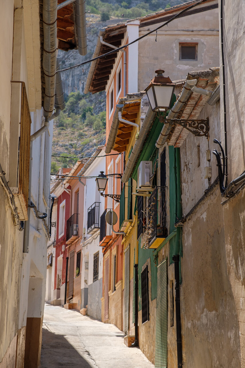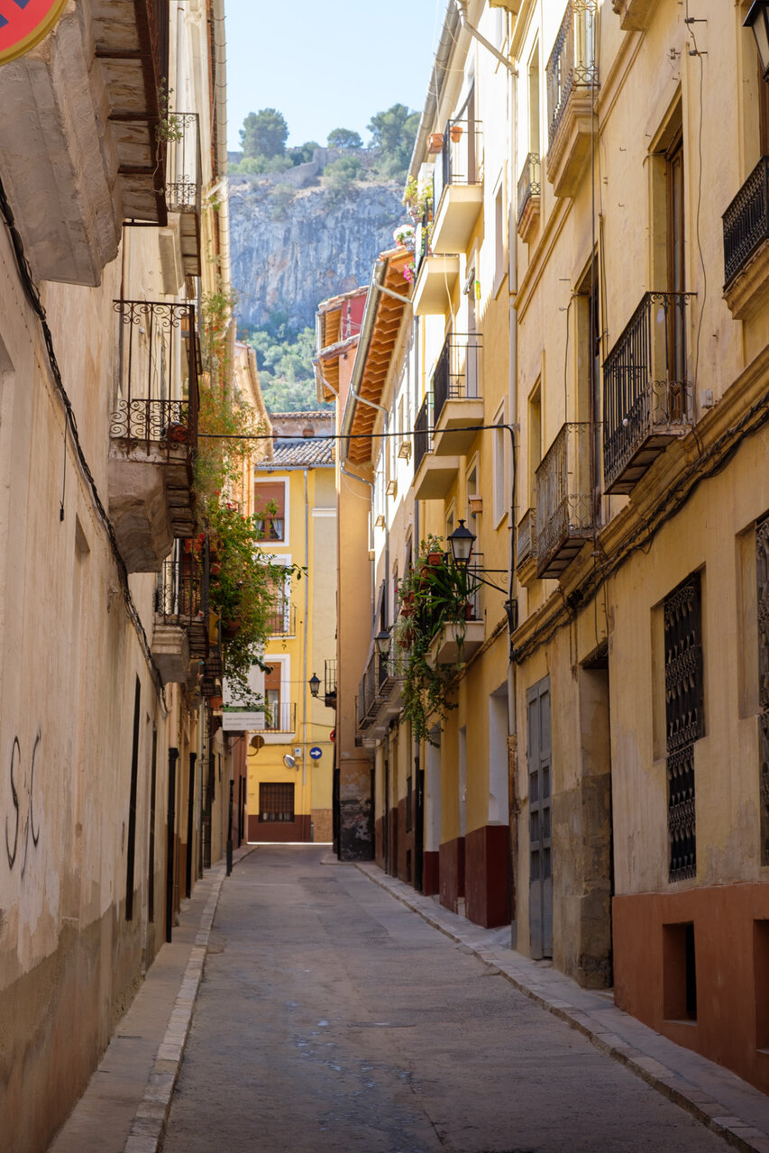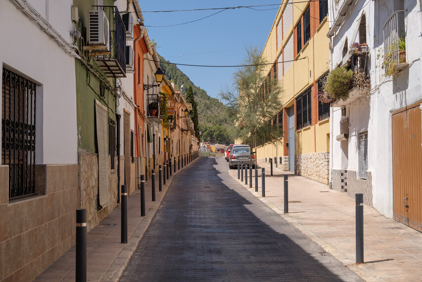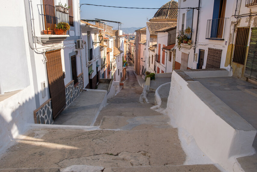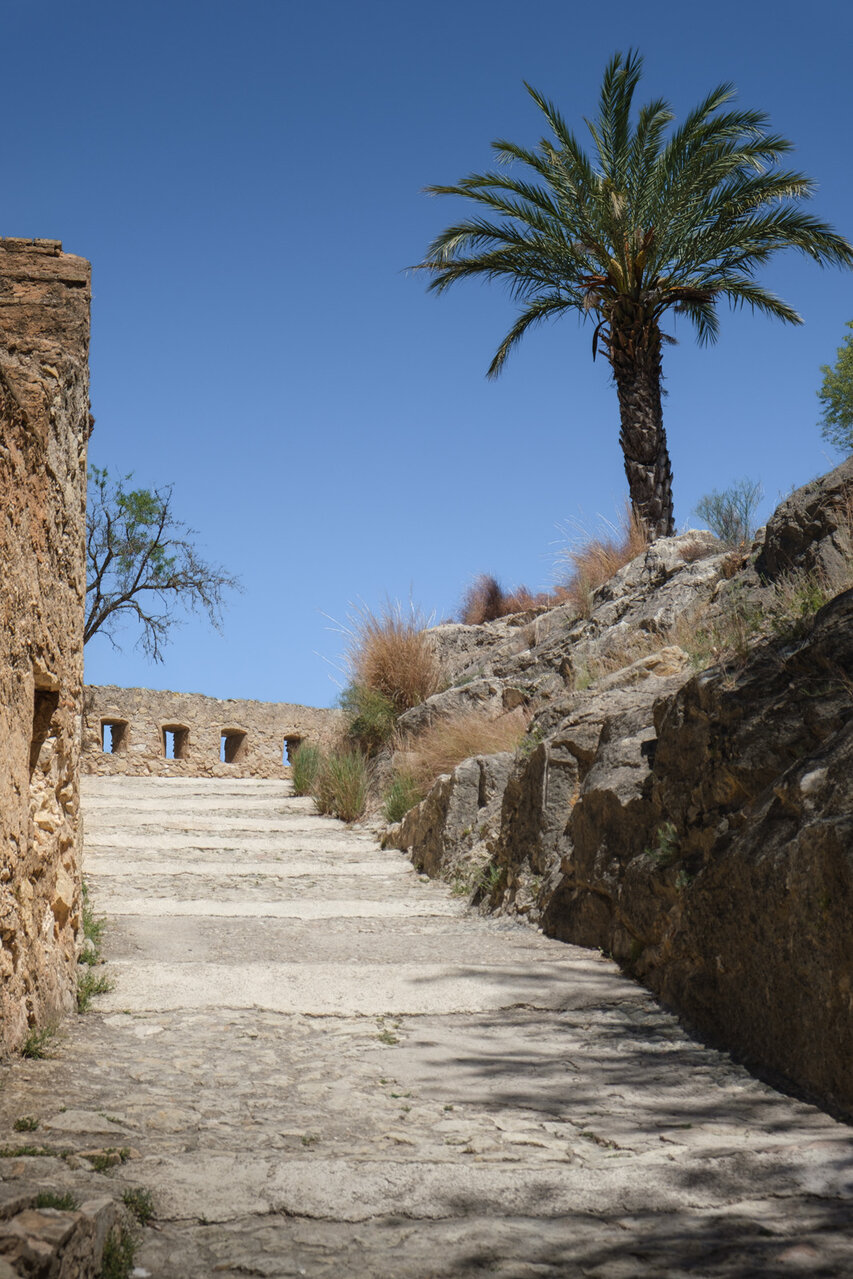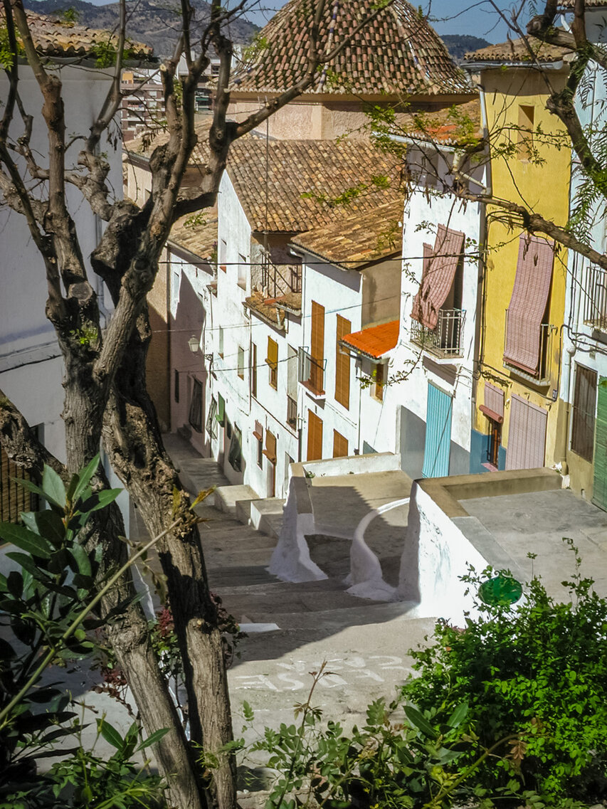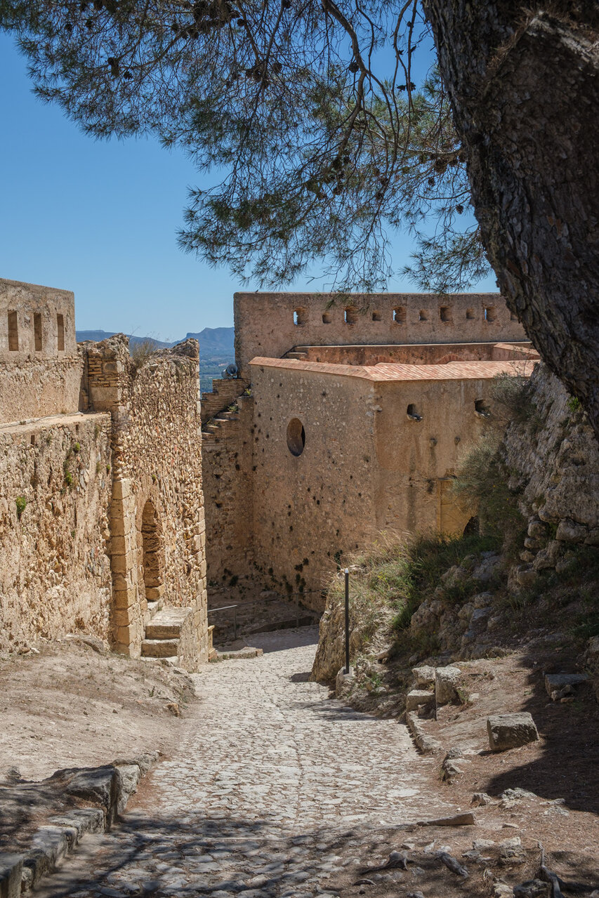 Die Burg (El Castillo) erstreckt sich über den gesamten Rücken des südlich der Altstadt gelegenen Berges Vernissa. Hier finden sich Überreste aus fast allen Epochen spanischer Geschichte, von den Iberern über die Römer und Mauren bis hin zur Gotik. Südlich des Burgberges liegt das Tal und der Ortsteil Bixquert.